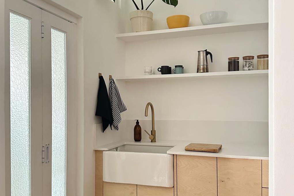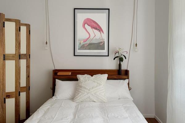 This chic studio apartment exudes a blend of modern elegance and cozy charm. The space is thoughtfully designed with a minimalist aesthetic, featuring clean lines and a soothing palette of neutral tones, complemented by subtle pops of color.