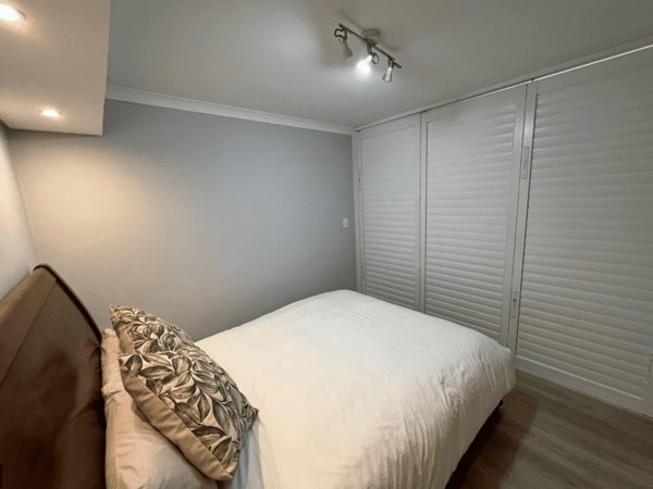 Private bedroom with French-style shutters and built-in cupboards