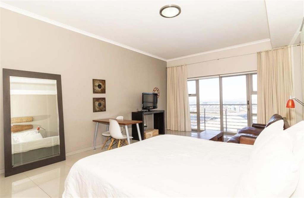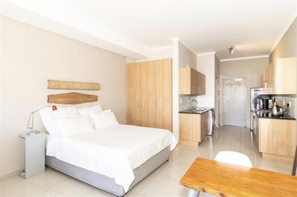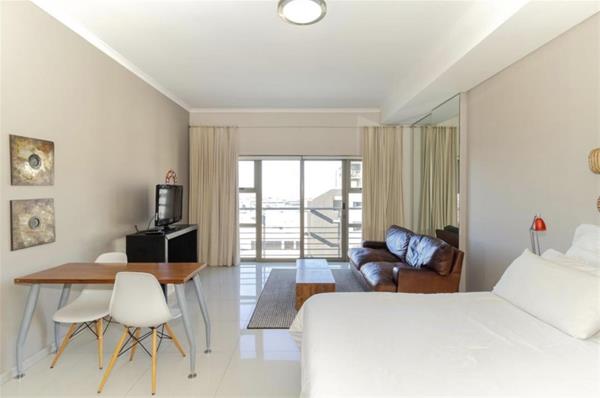 This fully furnished studio apartment on Brickfield Road, Salt River, offers a bright, stylish living space with large sliding doors that open to panoramic city and harbour views filling the apartment with natural light.