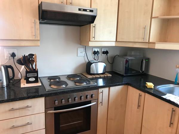 Upstairs with open plan kitchen leading to lounge and dining room, guest loo and one bedroom (en-suite with shower only). Kitchen with separate pantry and fitted with appliances, cutlery and crockery.