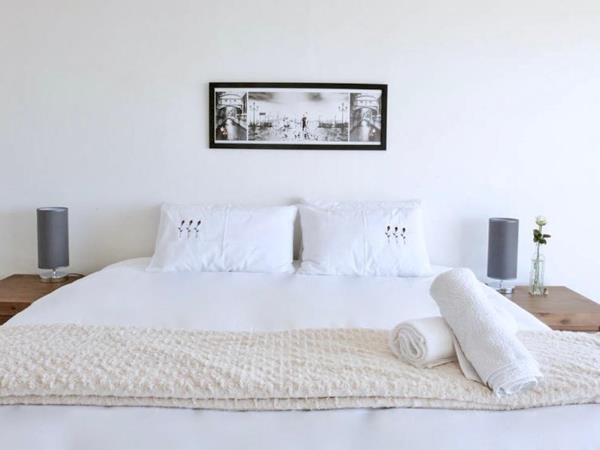 The main bedroom features a king-size bed, walk-in cupboards, and a luxurious en-suite bathroom with both a bath and shower.