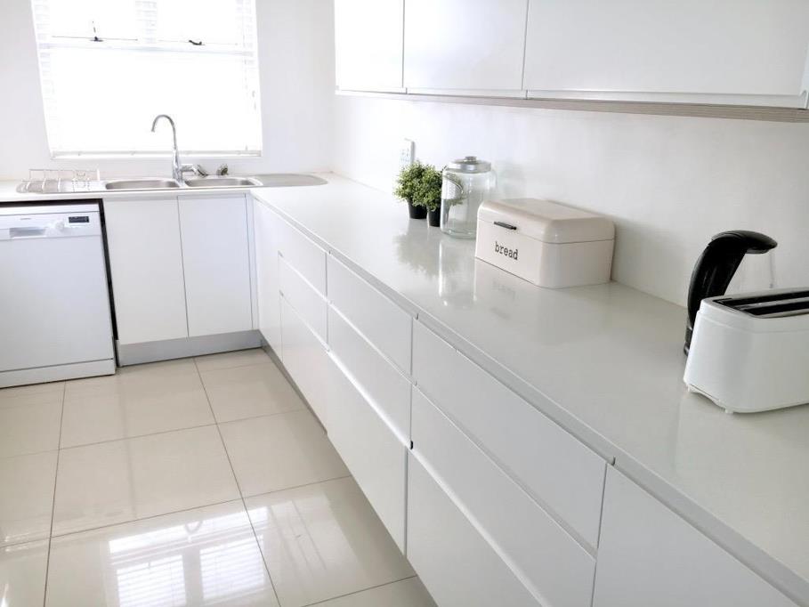 The modern kitchen is fully equipped with quality appliances dishwasher, fridge-freezer, oven, stove, and microwave and includes a separate laundry area with a washing machine and tumble dryer.