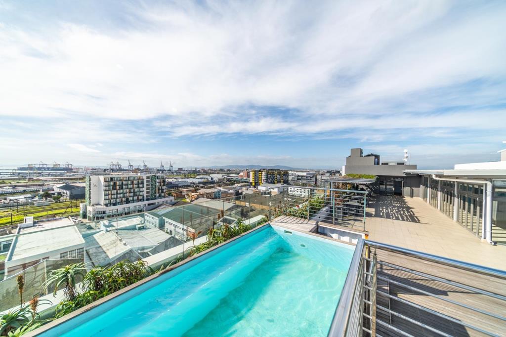 Rooftop entertainment area with panoramic views of Table Mountain, the Waterfront, and the city