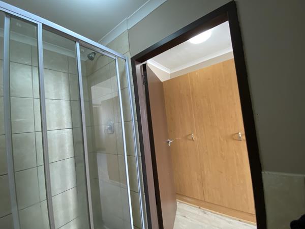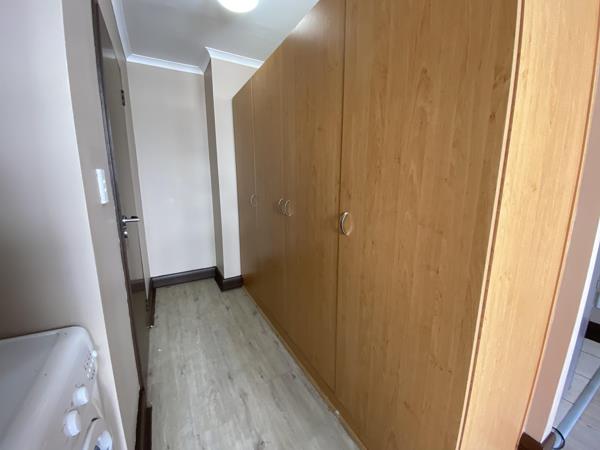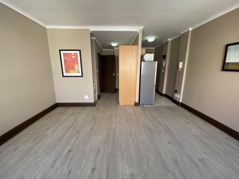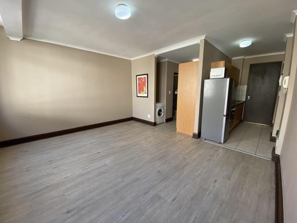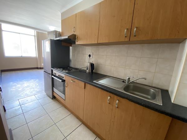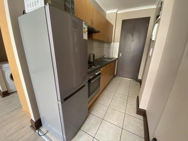 Studio apartment with plenty of natural light all day round. The open-plan studio space can easily accommodate a bed, breakfast table, couch and TV stand. Built-in cupboards ensures ample storage space. The kitchen is equipped with a fridge/freezer, washing machine and microwave.