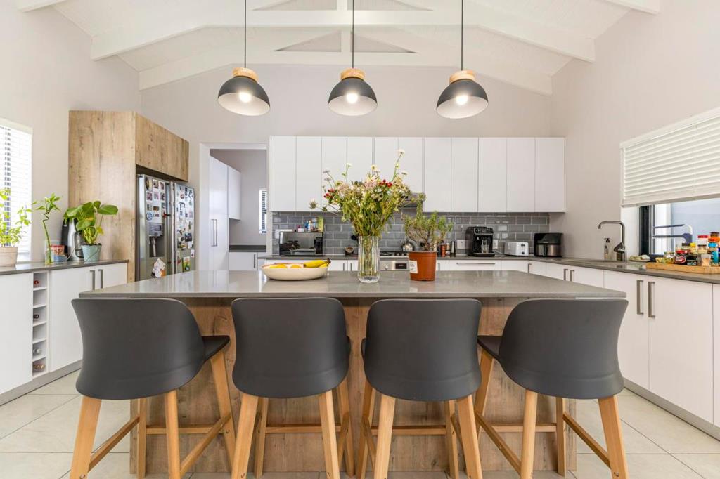 This stunning, newly built 4-bedroom, 2-bathroom home offers modern finishes throughout and is perfectly situated in a sought-after area close to Durbanville Primary and High Schools. Designed for effortless living and entertaining, the home features open-plan living spaces, a built-in braai indoors, and a second braai in the outdoor entertainment area. The contemporary kitchen includes a separate laundry and scullery for added convenience. A pet-friendly yard provides plenty of space for children and pets to play, while an automated double garage completes this beautiful property, offering both comfort and practicality.