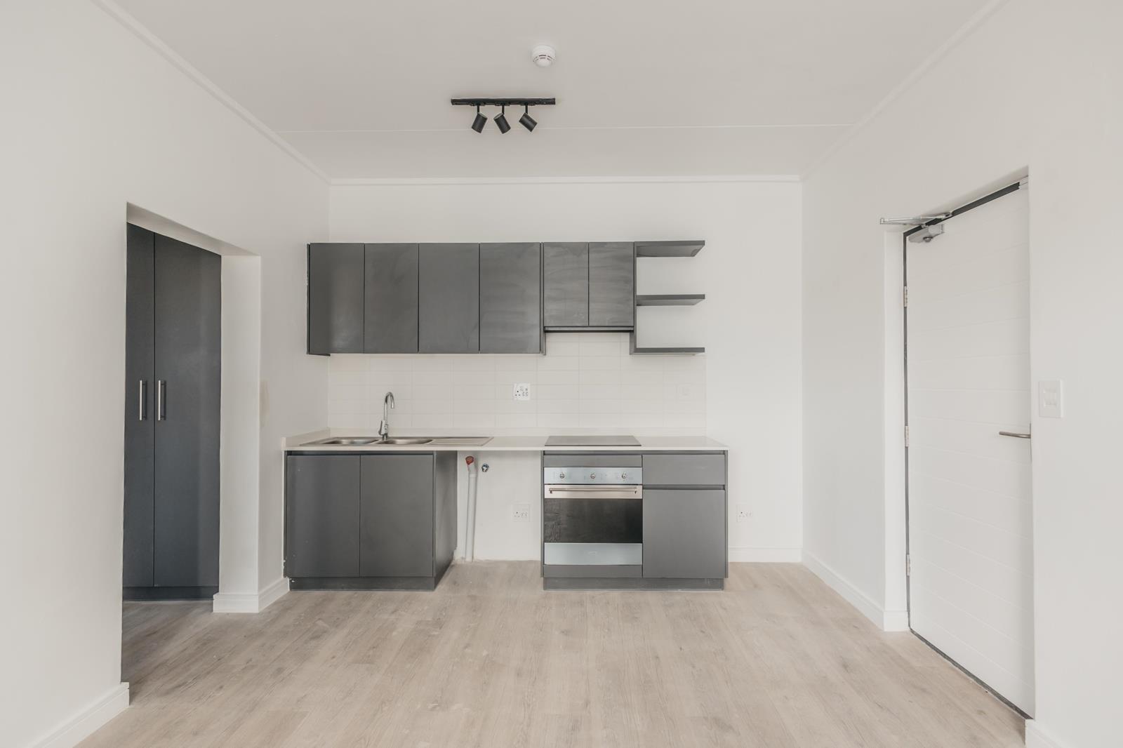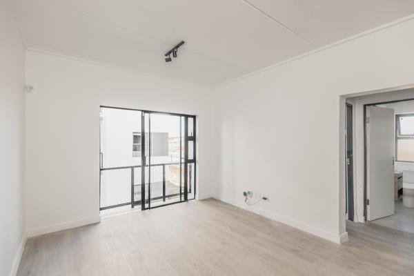 This unit features an open-plan modern kitchen with quartz countertops, flowing seamlessly into the lounge, which opens onto a balcony with a built-in braaiperfect for relaxing or entertaining. The spacious bedroom comes with built-in cupboards, while the modern bathroom includes a shower, toilet, and basin.