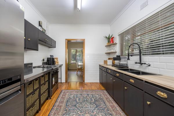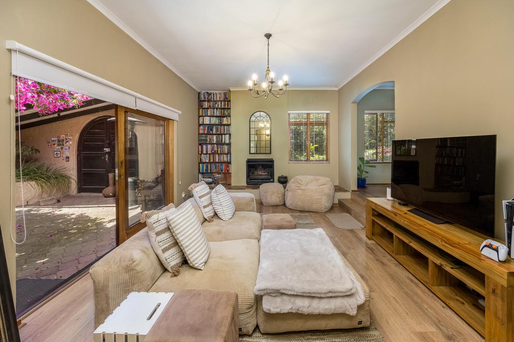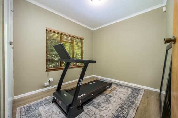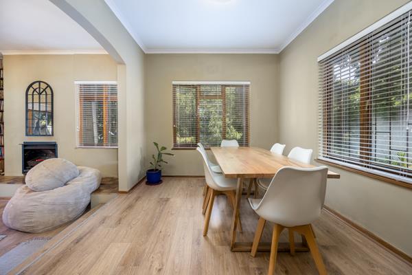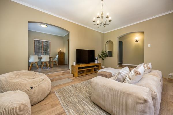 The home boasts a modern kitchen equipped with a gas stove and plumbing for two water appliances, flowing into a comfortable dining room. The cosy lounge, complete with a fireplace, opens out to a patio with a built-in braai, perfect for entertaining. Enjoy summer days in the sparkling swimming pool, set within a large, established garden.