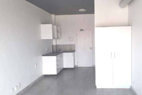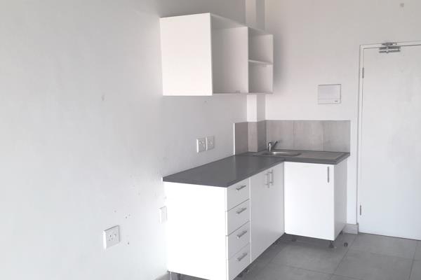 Kitchen is off to one corner of the room with plenty of cupboards.