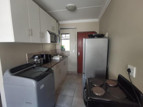This lovely 2 bedroom 1 bathroom apartment is on the ground floor, situated in a secure complex with 24 hour manned security, access controlled for added safety. Covered parking available within the complex, communal braai areas and children''s play parks are some of the features you find at the complex.