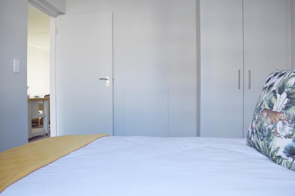 - Two generous bedrooms with tiled flooring and plenty of built-in cupboards.