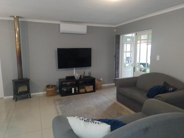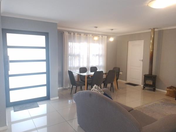 The open-plan lounge and kitchen create a welcoming living space, ideal for both everyday living and entertaining. An indoor braai area adds to the homes appeal, making it perfect for year-round gatherings.