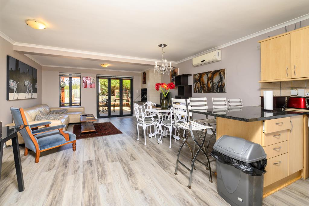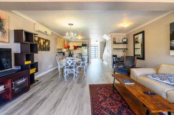 Suitable for a single person/couple or maximum family of three people. Downstairs: Open plan living area, kitchen, laundry area, small garage (not big enough for a car), guest WC and enclosed garden. Upstairs: Main bedroom with balcony (stunning golf and Table Mountain views), second bedroom and a full bathroom (shower and bath). Strict vetting by owner. One year lease. Strict estate rules will apply! Successful applicant will also get use of all the club leisure facilities, including golf. Viewing by appointment on weekdays between 09h00 and 16h00.
