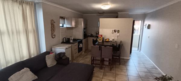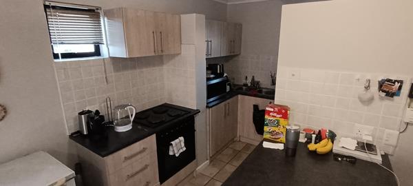 Enjoy a generous open-plan lounge and kitchen area, perfect for everyday living. The kitchen offers ample cupboard space and a sleek, contemporary design. The apartment is equipped with prepaid water and electricity, allowing for easy budgeting and control over monthly utilities.