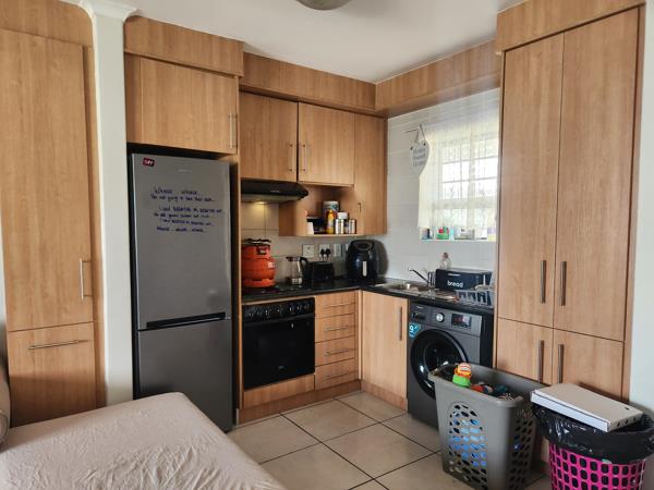 As you enter the apartment, you walk into an open plan kitchen and living area with loads of natural light. The kitchen has ample storage space and one water point. The main bedroom is spacious with ample cupboard space. The second bedroom is also fitted with built in cupboards. Both bedrooms have windows allowing for a beautiful natural light flow. The bathroom is fitted with a bath and shower.