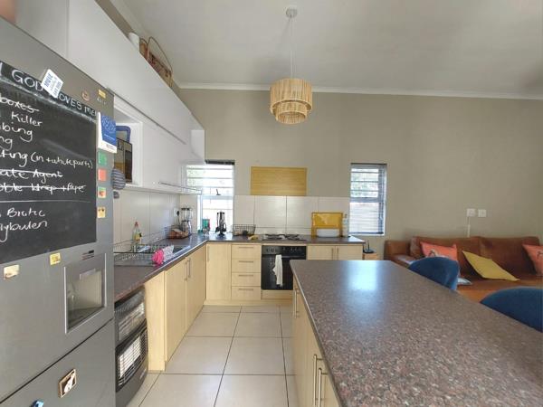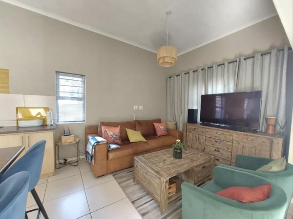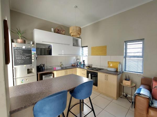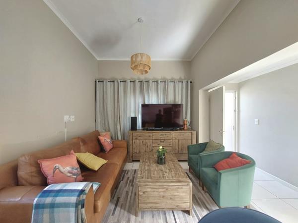 The layout has been designed for easy living. Both bedrooms are generously sized, carpeted, and fitted with ample built-in cupboards. The primary bedroom includes an en-suite bathroom with a shower, while the second bathroom offers both a bath and shower to suit every need. The heart of the home is the spacious open-plan living area that flows effortlessly into a contemporary kitchen. Extra cabinetry has been thoughtfully added to maximize storage without compromising style. From the living room, step out into a private courtyardan inviting space for relaxed outdoor entertaining and weekend braais.