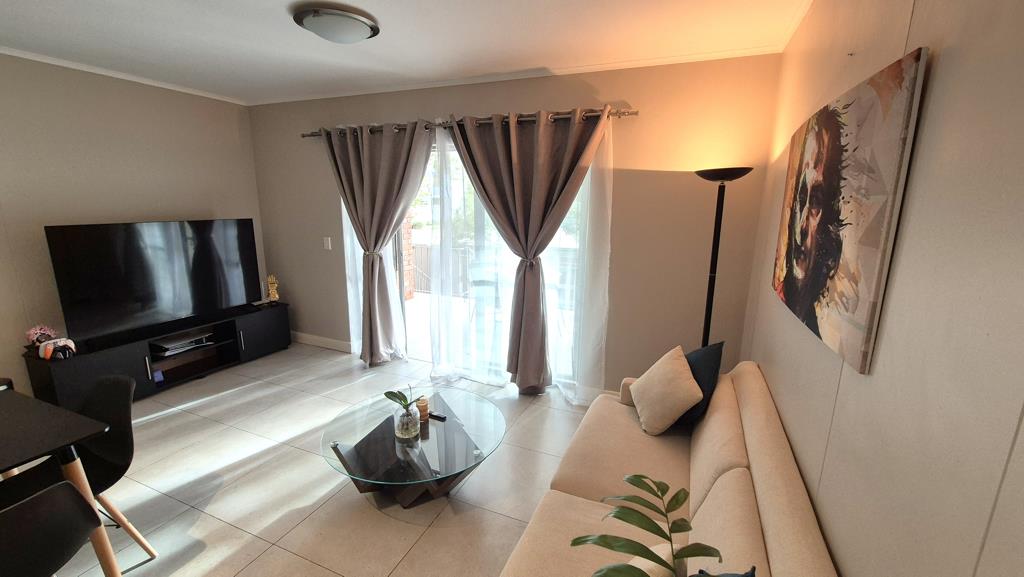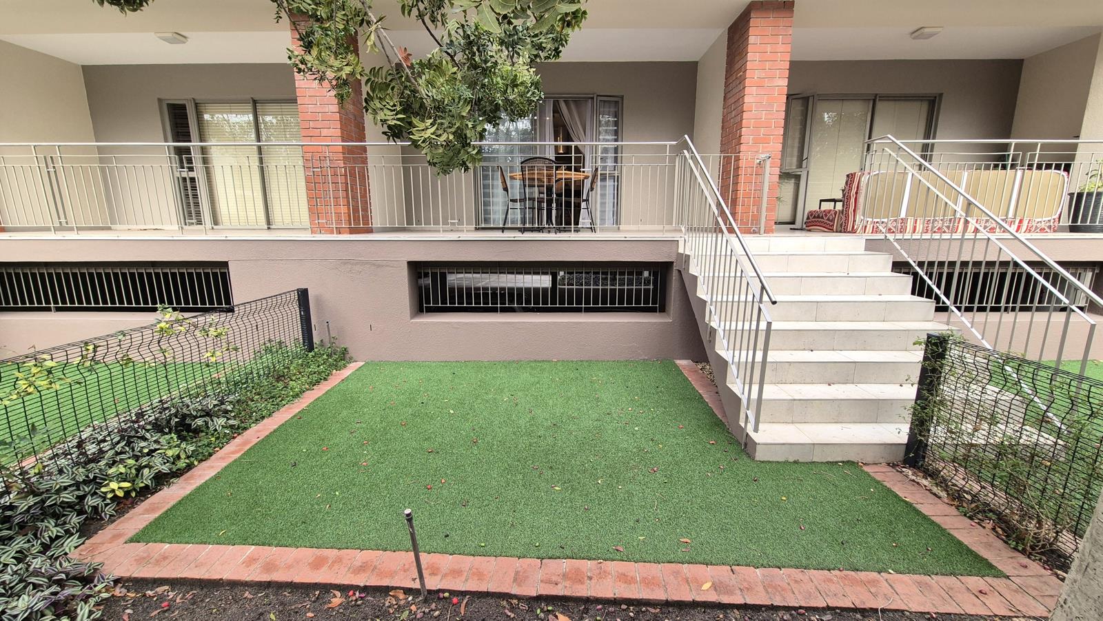 Enjoy contemporary living in this modern open-plan apartment, featuring a light-filled lounge that opens through sliding doors onto a spacious covered patio with steps leading down to your own private garden.
