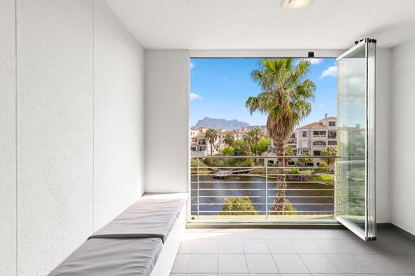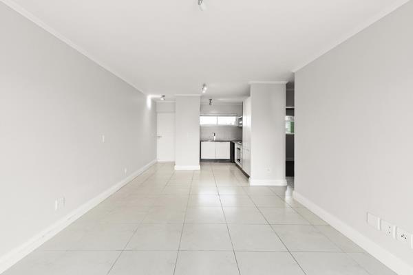 Available 01 February 2026 - Spacious tiled open plan kitchen and living area leading onto balcony with glass frameless stack doors to allow the unobstructed view of the gardens, canal and Table Mountain.
