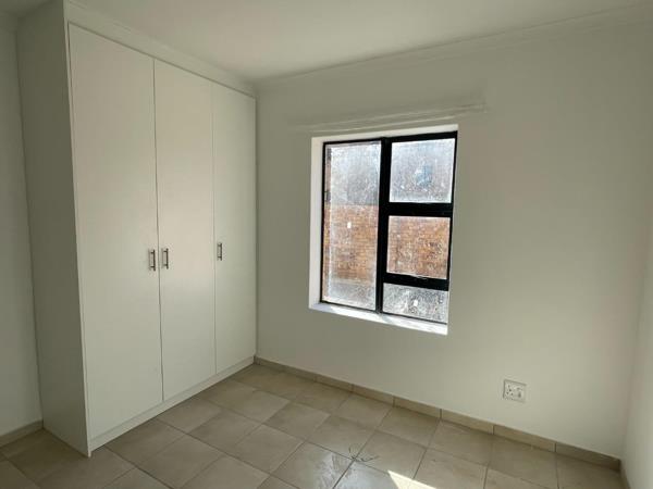 This stylish, fully tiled 2-bedroom apartment offers a modern open-plan kitchen designed for convenience and functionality. It includes built-in cupboards, space for a fridge, and a washing machine connection. The kitchen flows seamlessly into a spacious lounge area connected with a private courtyard.