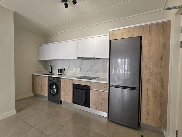 The apartment includes a fridge and washing machine, and is semi furnished with a bed, table, and kettle, making it a convenient option for tenants looking to move in with minimal setup. Clean lines, contemporary finishes, and good natural light give the space a fresh, modern feel.