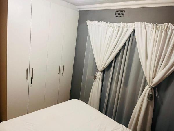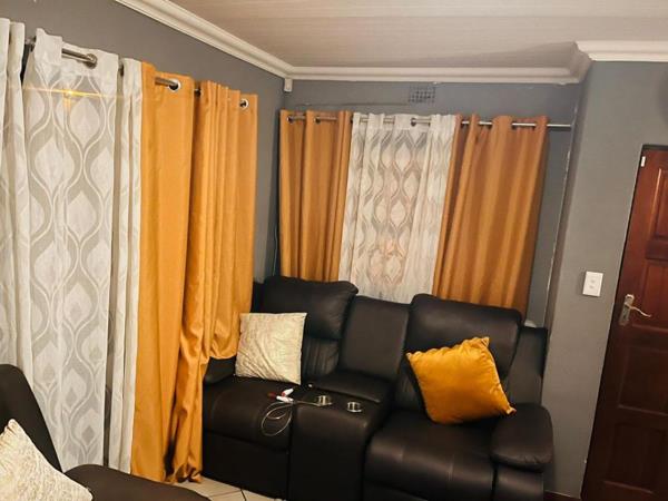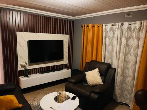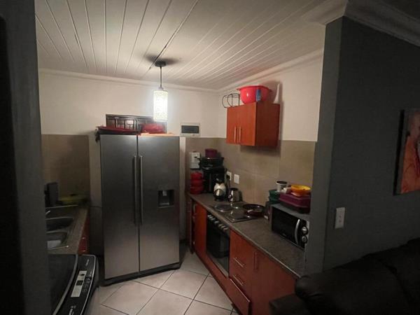 The home features an open-plan lounge and kitchen with built-in cupboards, creating a practical and inviting space for everyday living. All three bedrooms are fitted with built-in cupboards, providing ample storage. The house is fully tiled throughout, giving it a clean and modern finish while also being easy to maintain.