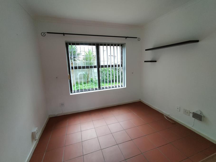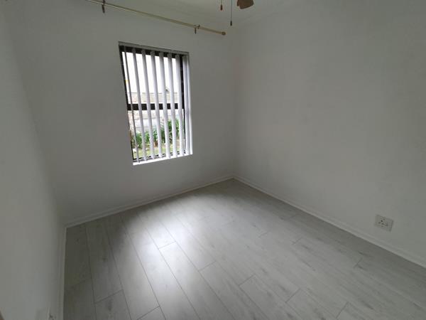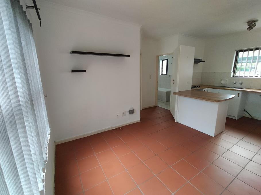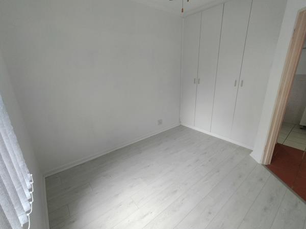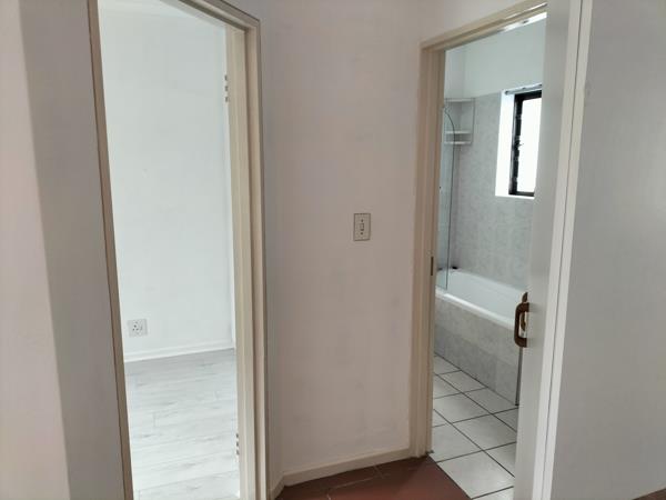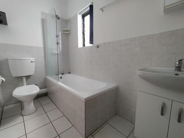 The spacious bedroom includes built-in cupboards, providing ample storage while maintaining a neat and uncluttered feel. The bathroom is fitted with a bath and overhead shower, offering the best of both convenience and relaxation.
