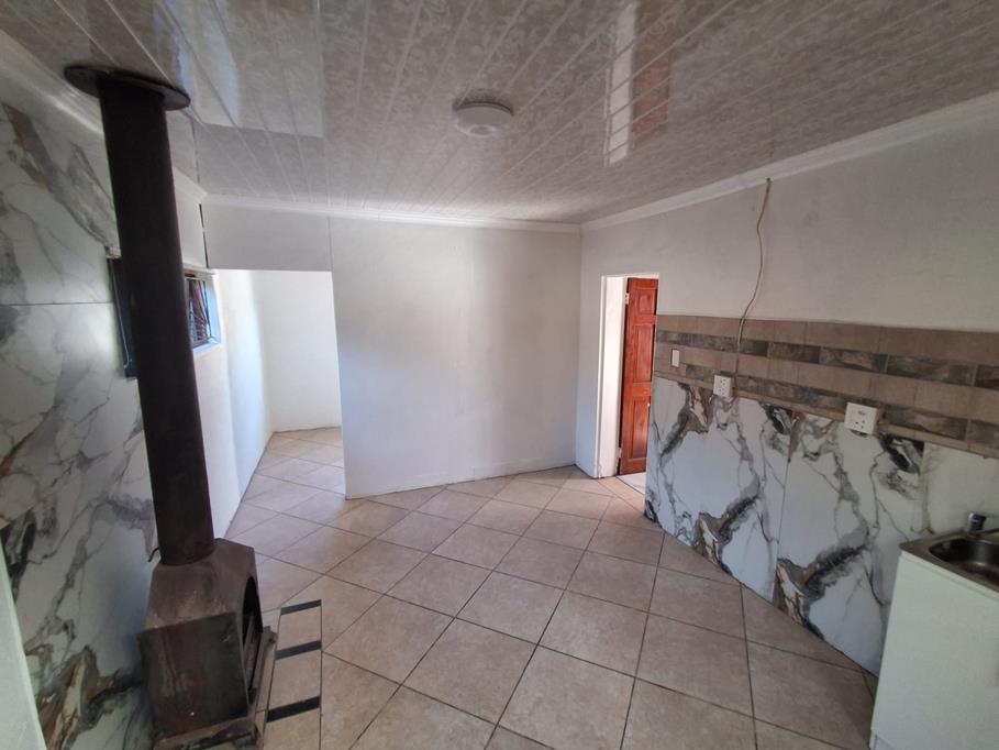 There are 2 bedrooms, one with built-in-cupboards. Prepaid electricity and R150.00 per person for water per month.