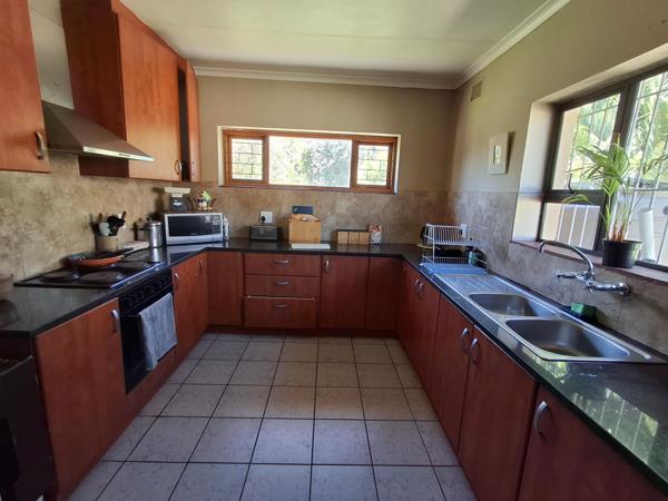 The property features a flatlet, which is a divided section of the home, comprising a large living area with a kitchen, a separate bedroom, and a bathroom. This space is well-suited to an elderly family member or an independent child.