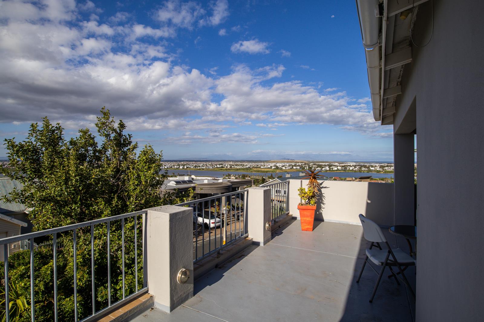 Expansive wrap-around balcony with stunning mountain and sea vistas