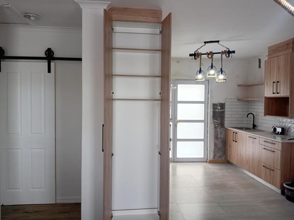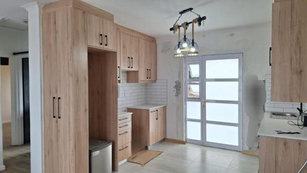 The kitchen has a tiled floor, new BIC, a free standing gas, and ample storage, flowing into an open-plan lounge that feels open and inviting.