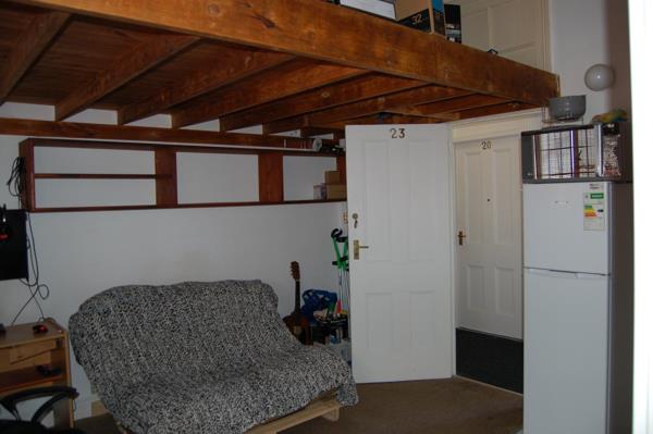 The apartment features an open-plan layout with an en-suite bathroom, including a shower and toilet, ensuring both privacy and practicality.