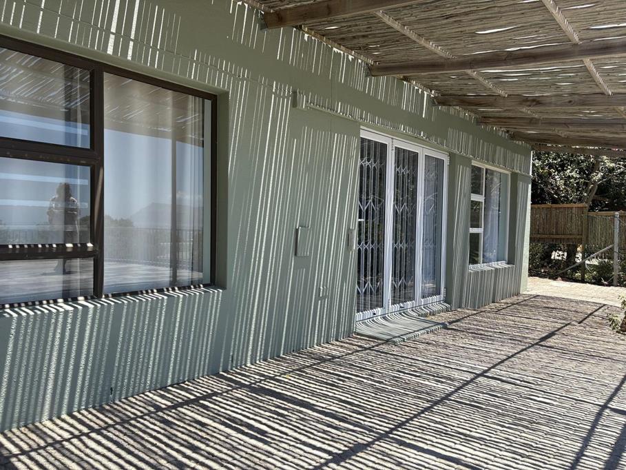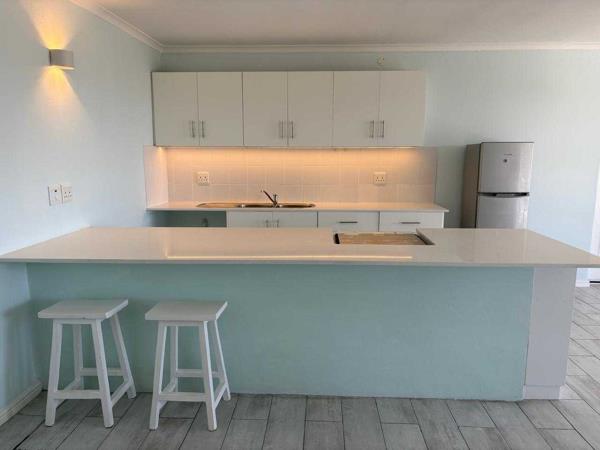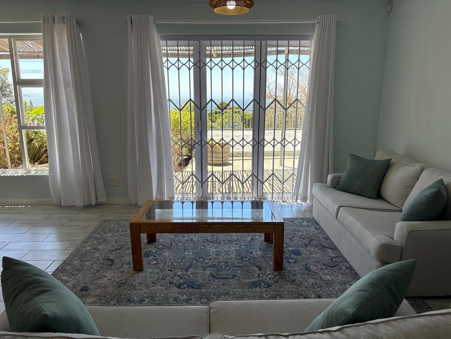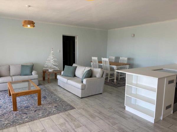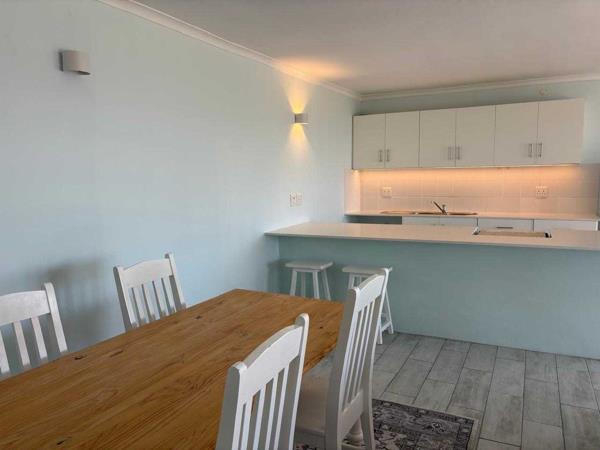 The apartment is freshly painted, light and bright, with doors leading out onto an undercover patio that runs the length of the building and expansive tiled deck overlooking False Bay.