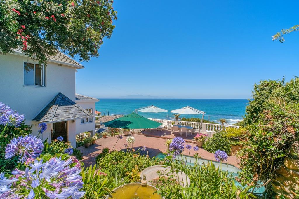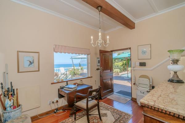 For dining, you have the choice between a sophisticated formal dining room and a casual informal space that also overlooks the ocean. The inviting patio sunroom offers panoramic vistas of False Bay, making it an ideal spot for relaxation and entertaining. Adjacent to the kitchen, you''ll find a convenient laundry area and a charming courtyard that faces the majestic mountains.