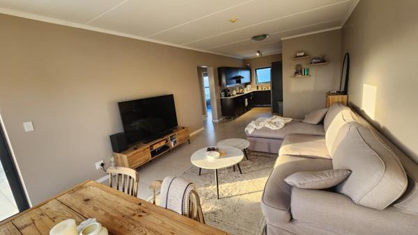 Open plan lounge and dining area. Direct access from the lounge to the spacious balcony.