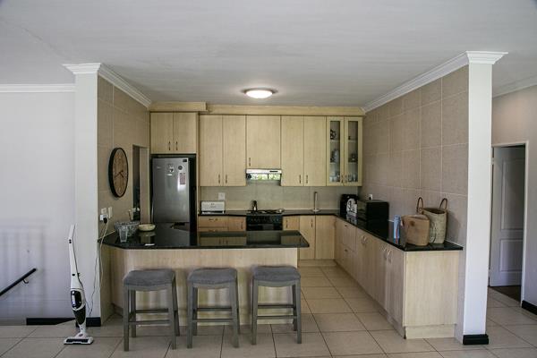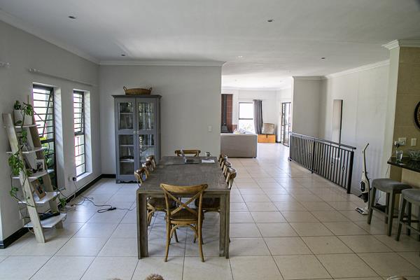 Walk past the front door and you will find the dining room area on your right and the kitchen on your left. The scullery has two water points for machines and a double basin. The foyer also offers stairs leading to the double garage.