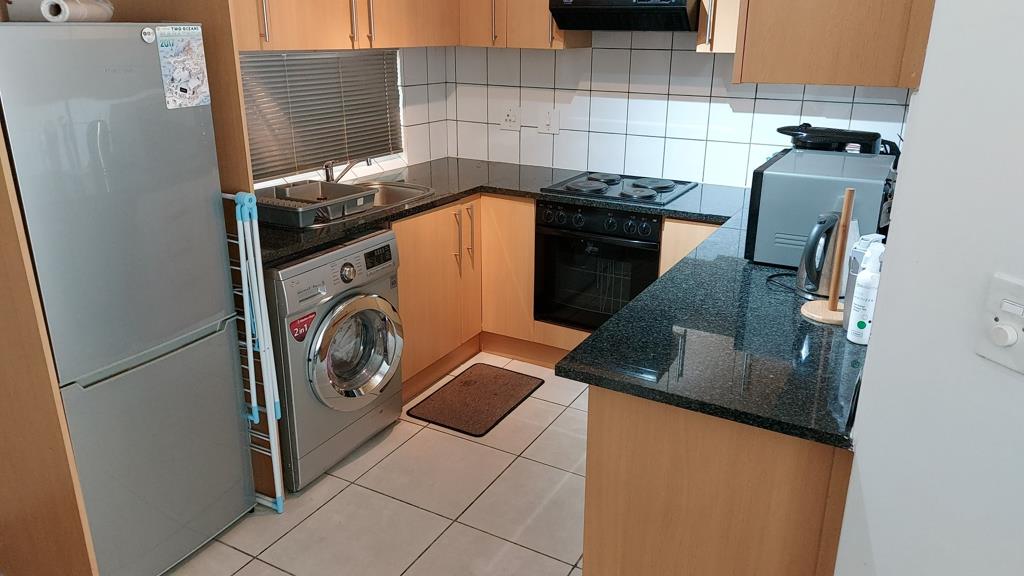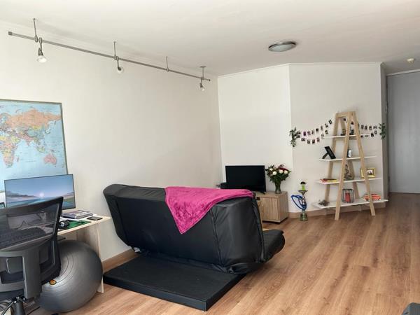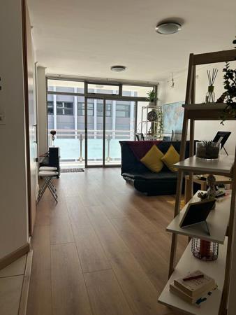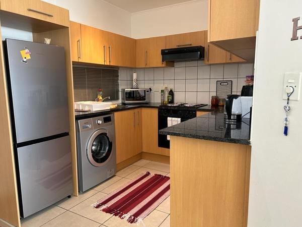 Discover modern urban living in this well-appointed 50 sqm apartment, ideally situated in a security complex in Claremont, Cape Town. This inviting one-bedroom, one-bathroom unit features an open-plan lounge area with contemporary laminate wood flooring, creating a seamless flow. The compact yet highly functional kitchen boasts sleek granite countertops, ample light wood cabinetry, and integrated appliances including a washing machinedryer combo, fridge, oven, and hob, ensuring convenience for daily living.