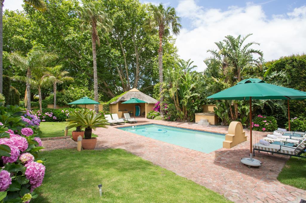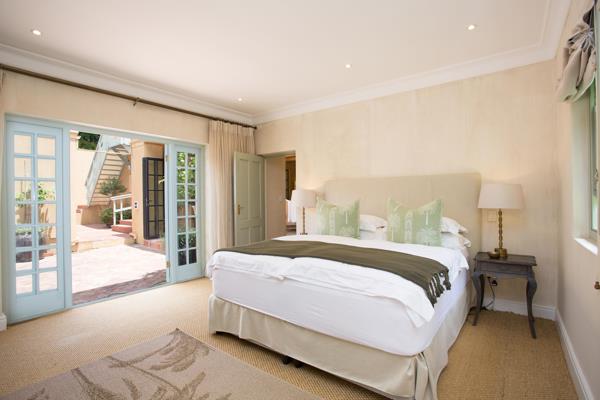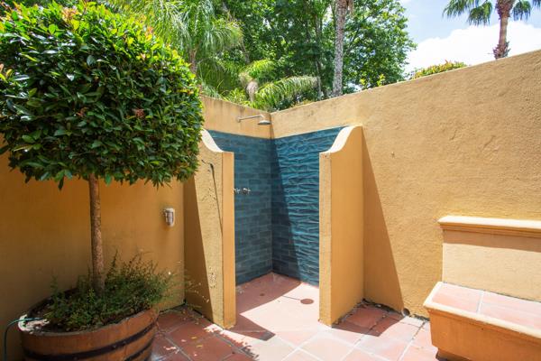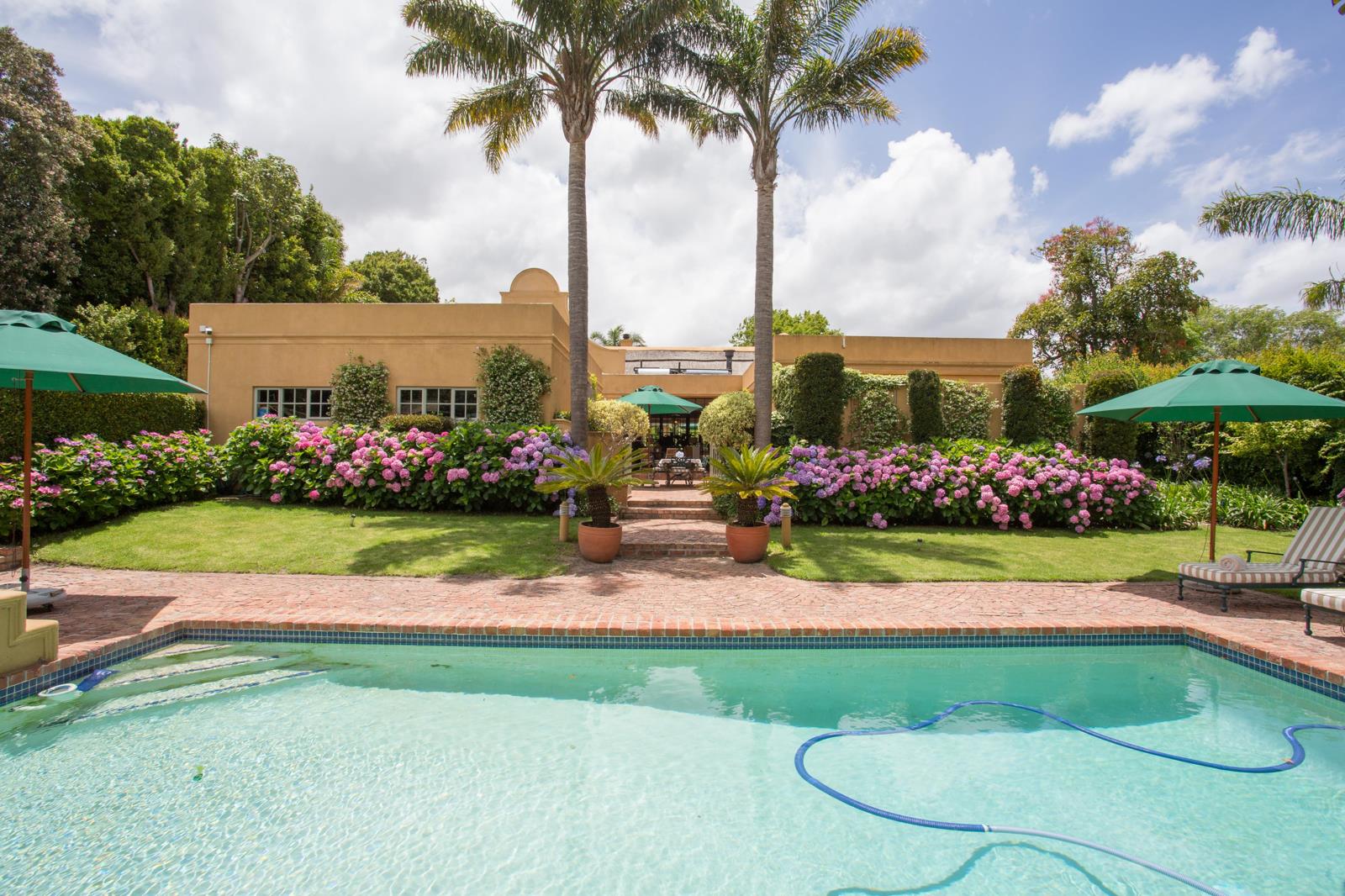 Outdoors, the experience deepens. A private swimming pool, complete with an optional child safety net, offers a refreshing escape on warm summer days, while the heated five-seater jacuzzi invites you to unwind year-round. The estate is designed for seamless indoor-outdoor living, with four distinct alfresco dining areas, allowing you to savor each meal with the fresh Constantia breeze and the scent of citrus and lavender in the air. The organic herb and fruit garden not only adds to the estates charm but also encourages a connection to nature, bringing fresh seasonal ingredients straight to your table.