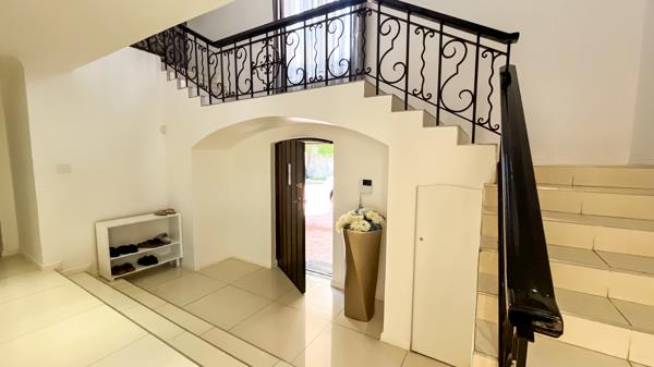 The main house is configured across two levels. Upstairs, four well-sized en-suite bedrooms provide comfortable private retreats, including a spacious main suite featuring its own lounge area, a full bathroom, and extensive dressing space. An additional family lounge on this level enhances the homes functionality.