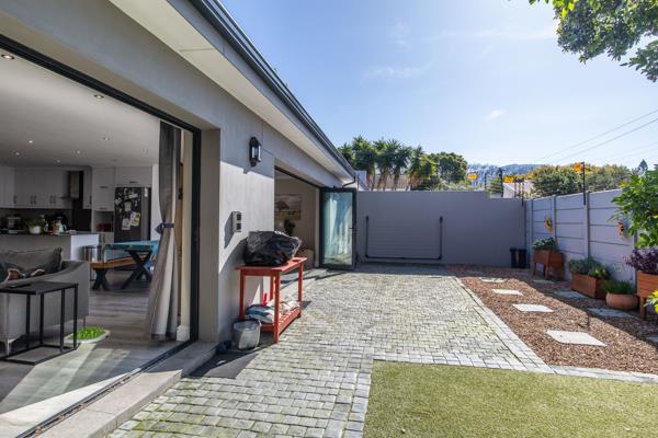Lounge stacker doors open to the private enclosed paved and Astro court yard garden.
