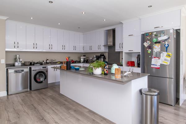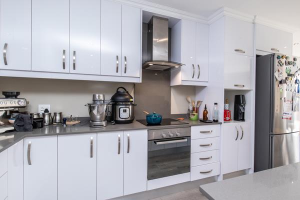 You will love the expansive open plan living areas boasting modern vinyl floors, offering perfect flow through stacking doors to sunny low maintenance paved garden with artificial lawn. It features a large modern open plan kitchen gloss white cupboards and quartz stone tops, built-in bosch oven with ceramic hob and extractor and plumbing for 2 appliances as well as large feature island.