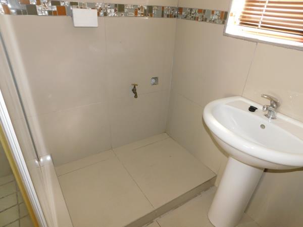 Bathroom: Includes a shower, hand basin, and toilet. Theres also additional space and plumbing for a washing machine.