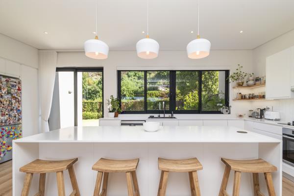 Outdoor living is simple and enjoyable. The undercover patio overlooks the garden and the mountain backdrop, giving you a calm space to relax. There is a double garage, secure parking behind the garage, additional open bays and good storage throughout the home. The property also includes practical eco-friendly features a borehole and automated irrigation.
