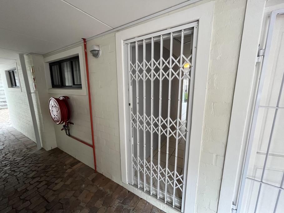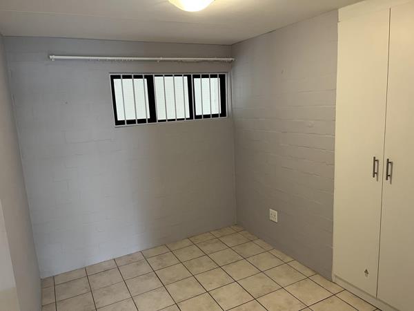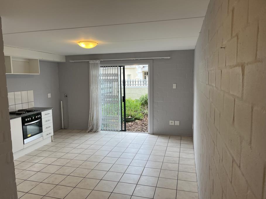 The apartment offers an open plan kitchen / lounge which leads to the garden area. The kitchen has space for a single door fridge and is plumbed for a washing machine. The bathroom consists of a shower, basin and toilet. The bedroom has built-in cupboards and space for a double bed.