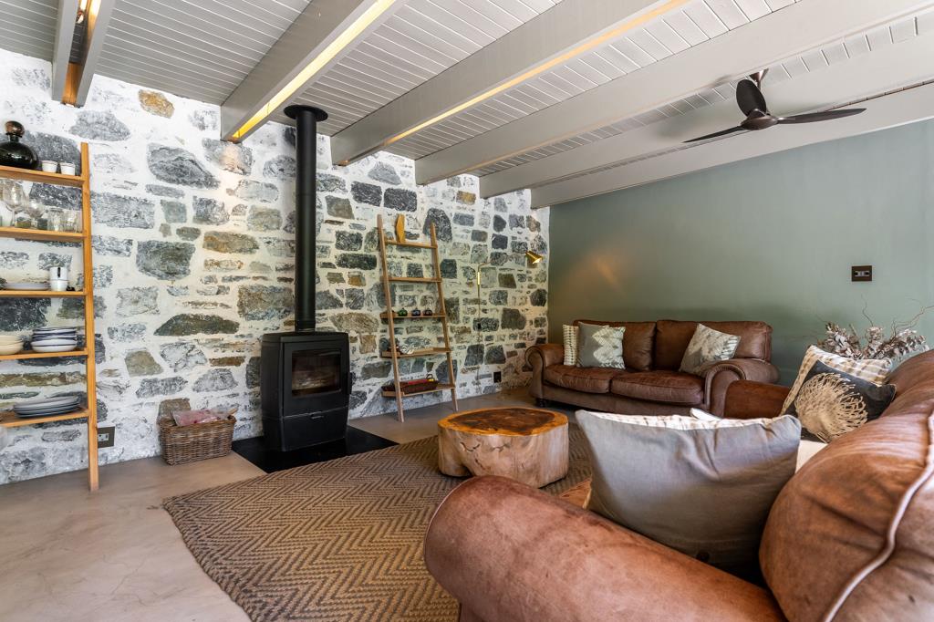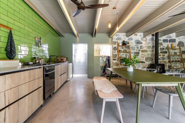 This home features exquisite natural finishes, including sand-washed windows, screed flooring, and striking Malmesbury cladding stonework. Elegant touches like Hoi P''loi pendant lighting, bespoke Elke Kitchens cabinetry, and Victorian Bathrooms fixtures elevate the living experience, offering a harmonious balance of heritage and contemporary design.