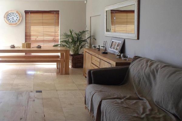 Open-plan kitchen with ample cupboard space. Large lounge and dining area with built-in braai.