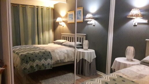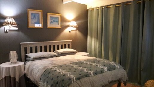 Some features of this apartment is the full bathroom, the large mirror cupboards in the bedroom. The French doors in the bedroom opening onto a small private courtyard totaly private and secured. Good quality clean Queen size bed and mattress. Large glass dressing table. Kitchen has build in cupboards, engineered tops, gas hob, electric oven, breakfast nook, fridge microwave etc and the lounge is fitted with L Shape sofa ,TV, DSTV explora and etc as seen on the photos. Laminated floors throughout accept bathroom.