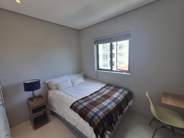 This apartment features an open-plan lounge and dining area leading onto a balcony with beautiful sea views. Both double-volume bedrooms include built-in cupboards and partial sea views.