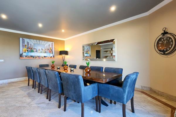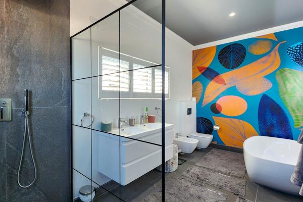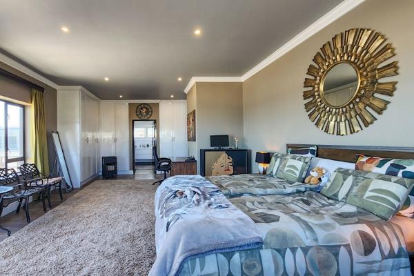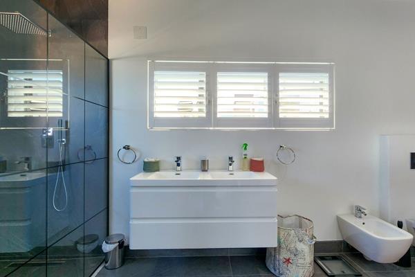 Double-storey house wrapped in Table Bay sea views. A two-storey Villa with a rooftop terrace wrapped within Table Bay sea views, offers a private pool, five bedrooms, all en-suite and two kitchens.