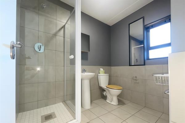 The apartment features a well-designed open-plan kitchen and lounge, allowing natural light to flow through the space. The kitchen offers ample cupboard space, a built-in oven, hob and extractor, and room for essential appliances. The lounge opens onto a sunny balcony, creating the perfect place to unwind after a long day. Both bedrooms are well-sized and offer space for double beds, while the full bathroom includes a shower, basin and toilet for everyday convenience.