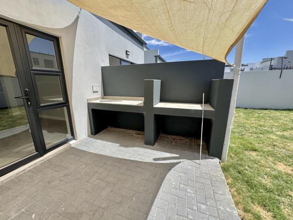 Step into a bright and modern open-plan living area that flows seamlessly into the dining space and designer kitchen, complete with a gas hob, built-in oven, and separate scullery to keep the mess out of sight. Sliding doors lead out to a large back garden with an uncovered double braai area, ideal for entertaining family and friends.