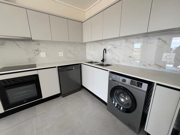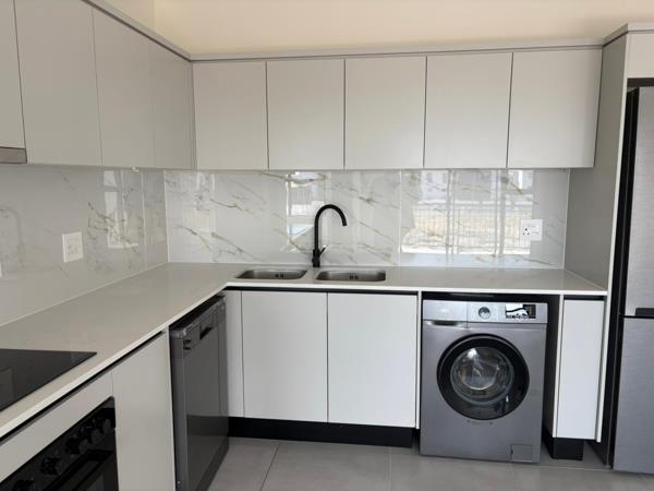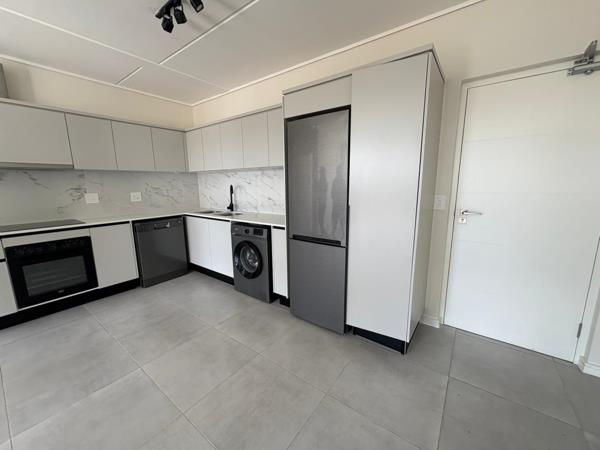 Be the first person to move into this brand new 2 bedroom apartment on the second floor at Suikerbos. North facing, with 2 bathrooms both with a shower and 2 covered parkings. A fridge, washing machine and dishwasher is included. There is a monthly fixed electricity cost of R251.54 plus prepaid utilities.